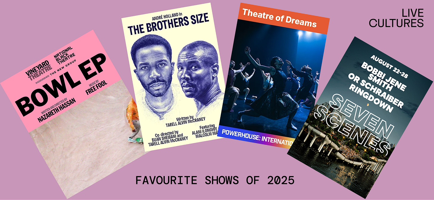 I hope this newsletter finds you well in the haze of the amorphous time warp between Christmas and the New Year. 2025 has been a year a growth and momentum to say the least. Slowly but surely, Live Cultures is hitting new milestones and opening up new doors, communities and opportunities. This time last year, I was celebrating having taking 60 people to the theater and today, that number has grown almost threefold! Personally, I’ve had the opportunity to explore more plays and theaters in NYC and share them with you all IRL. To celebrate, I wanted to take a look back on some of the highlights of the year.